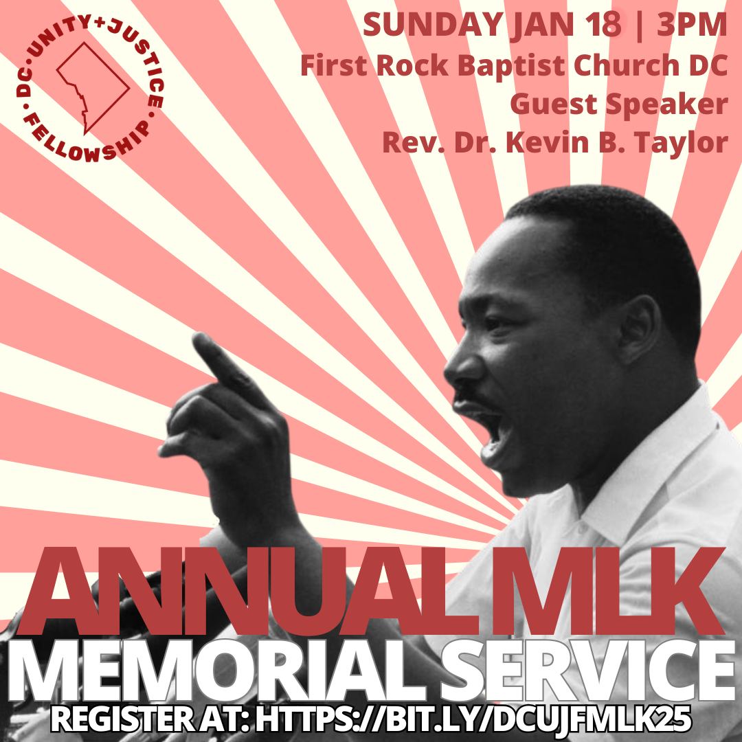 Joint Martin Luther King Memorial Service January 18, 2026 3:00 pm First Rock Baptist Church 4630 Alabama Avenue SE Washington DC 20019 Get Directions Register